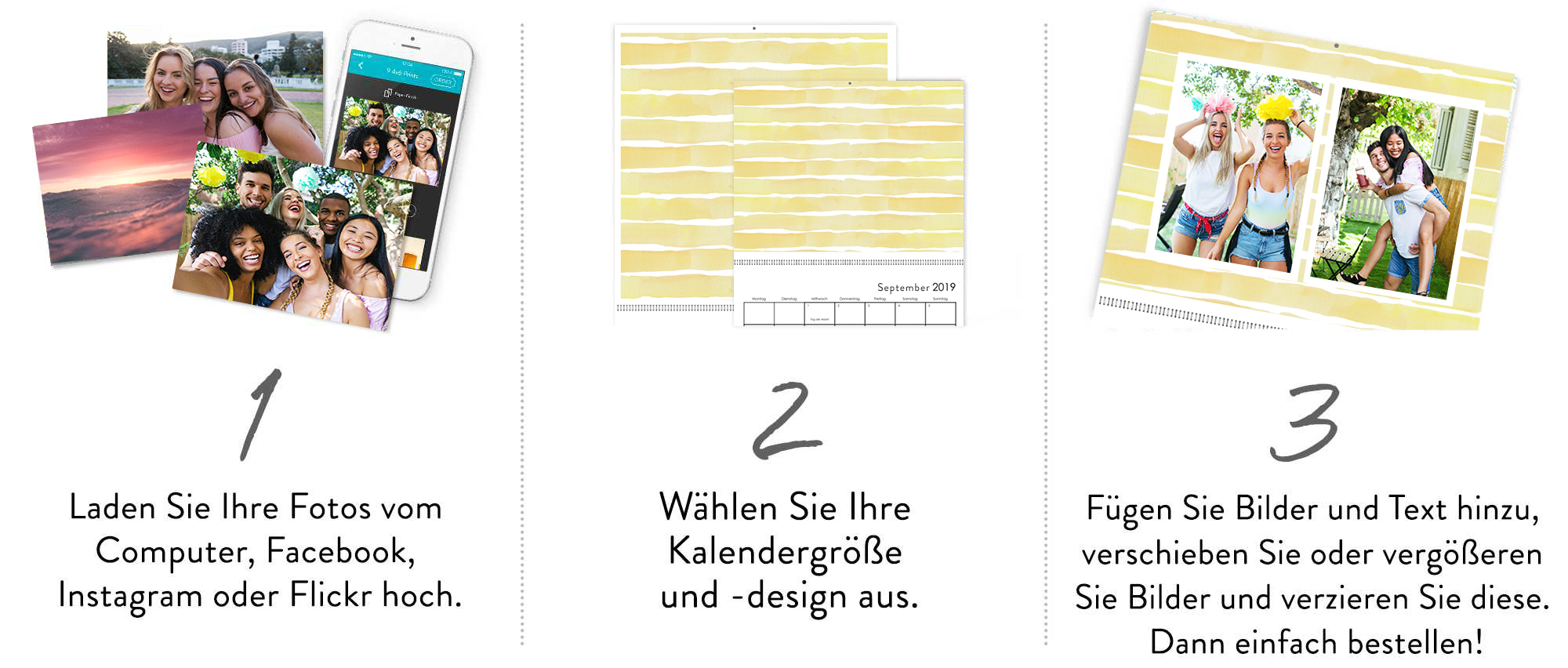 Unsere Fotokalender können Sie in wenigen Minuten gestalten und einfach individuell anpassen.