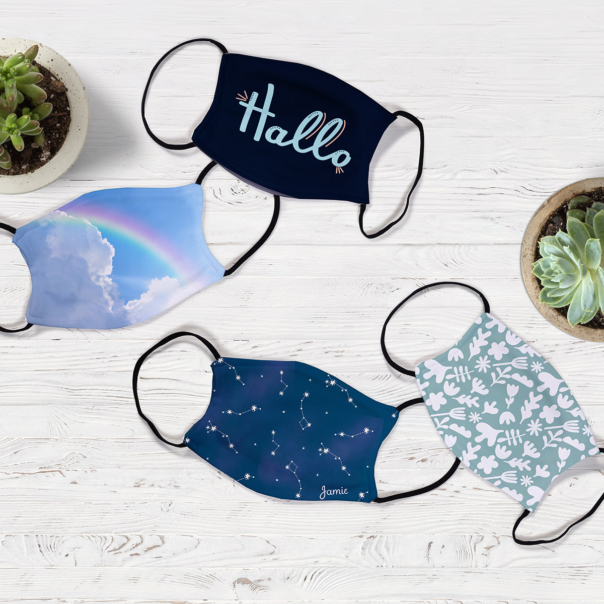 Schau mal auf unserer Snapfish-Webseite vorbei, dort findest du zahlreiche Masken-Designs. Vom Tarnungsmuster bis hin zu Tiergesichtern, von Blumenmustern bis hin zu Sprüchen – du kannst aus vielen einzigartigen Designs auswählen. Unsere zweilagigen personalisierten Masken sind wiederverwendbar, waschbar und bequem. Die Maske in Einheitsgröße verfügt über eine Tasche, in die ein Kohlefilter eingesetzt werden kann.